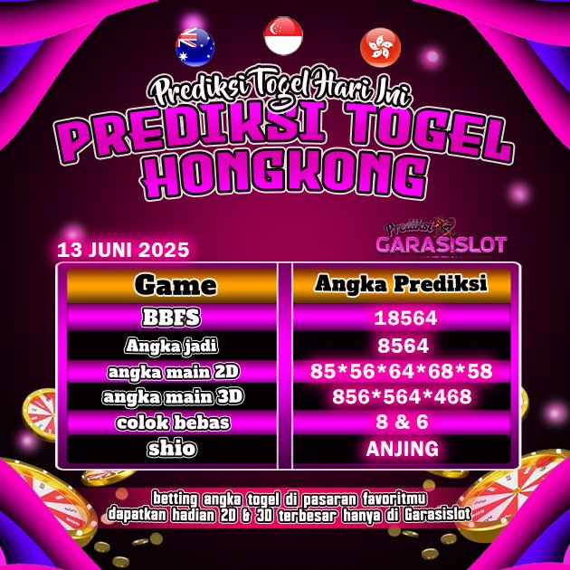 Prediksi togel Hongkong hari ini yang ditawarkan Prediksi GARASISLOT akan membantu Kamu dalam menyelesaikan catatan menyiapkan angka main. Prediksi GARASISLOT adalah halaman khusus untuk membocorkan angka prediksi seputaran pasaran togel terbesar di Indonesia. Hasil prediksi yang dirilis oleh tim khusus situs togel terpercaya GARASISLOT ini mempunyai tingkat akurat terbaik. Situs ini memungkinkan Kamu untuk mendapatkan informasi seputaran shio, buku mimpi, data keluaran terakhir serta menyaksikan live draw. Jadi cukup dalam satu website seluruh penikmat togel online dapat memperoleh informasi bermain. Prediksi Garasislot juga memiliki rekomendasi bandar togel terpercaya yang siap melayani dan membayar seluruh kemenangan hadiah jackpot.