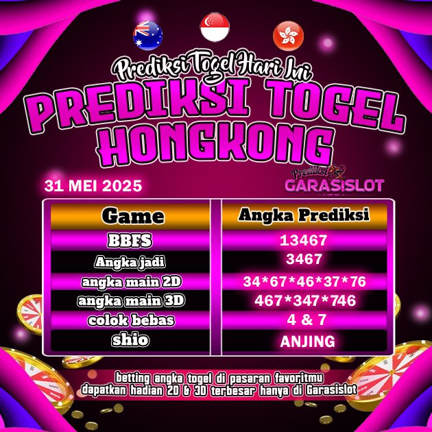 Prediksi togel Hongkong hari ini yang ditawarkan Prediksi GARASISLOT akan membantu Kamu dalam menyelesaikan catatan menyiapkan angka main. Prediksi GARASISLOT adalah halaman khusus untuk membocorkan angka prediksi seputaran pasaran togel terbesar di Indonesia. Hasil prediksi yang dirilis oleh tim khusus situs togel terpercaya GARASISLOT ini mempunyai tingkat akurat terbaik. Situs ini memungkinkan Kamu untuk mendapatkan informasi seputaran shio, buku mimpi, data keluaran terakhir serta menyaksikan live draw. Jadi cukup dalam satu website seluruh penikmat togel online dapat memperoleh informasi bermain. Prediksi Garasislot juga memiliki rekomendasi bandar togel terpercaya yang siap melayani dan membayar seluruh kemenangan hadiah jackpot.