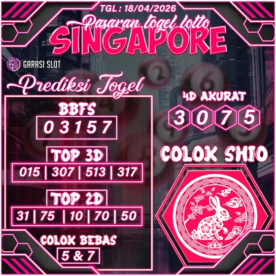 Togel SINGAPORE adalah pasaran terlaris yang hampir tidak pernah tergantikan. Setiap harinya ribuan pengguna memburu dan mencari prediksi jitu seputaran togel SINGAPORE hari ini. Nah, dibawah ini adalah prediksi togel SINGAPORE Lotto 18 APRIL 2026 terbaik.
