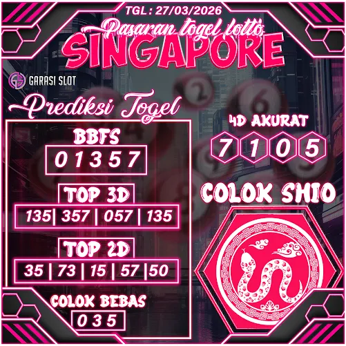 Togel SINGAPORE adalah pasaran terlaris yang hampir tidak pernah tergantikan. Setiap harinya ribuan pengguna memburu dan mencari prediksi jitu seputaran togel SINGAPORE hari ini. Nah, dibawah ini adalah prediksi togel SINGAPORE Lotto 27 APRIL 2026 terbaik.