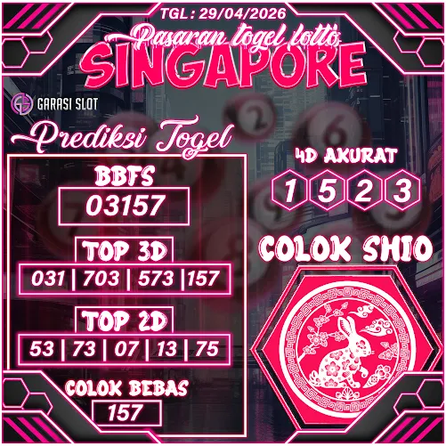 Togel SINGAPORE adalah pasaran terlaris yang hampir tidak pernah tergantikan. Setiap harinya ribuan pengguna memburu dan mencari prediksi jitu seputaran togel SINGAPORE hari ini. Nah, dibawah ini adalah prediksi togel SINGAPORE Lotto 29 APRIL 2026 terbaik.