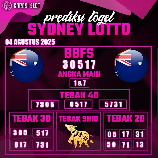 Togel SYDNEY adalah pasaran terlaris yang hampir tidak pernah tergantikan. Setiap harinya ribuan pengguna memburu dan mencari prediksi jitu seputaran togel Sydney hari ini. Nah, dibawah ini adalah prediksi togel Sydney Lotto 04 AGUSTUS 2025 terbaik.