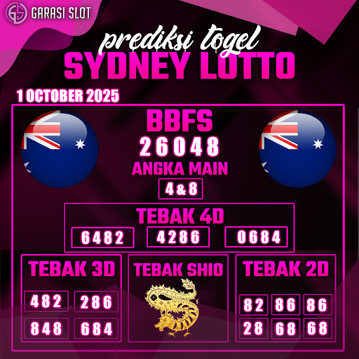 Togel SYDNEY adalah pasaran terlaris yang hampir tidak pernah tergantikan. Setiap harinya ribuan pengguna memburu dan mencari prediksi jitu seputaran togel Sydney hari ini. Nah, dibawah ini adalah prediksi togel Sydney Lotto 1 OCTOBER 2025 terbaik.