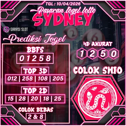 Togel SYDNEY adalah pasaran terlaris yang hampir tidak pernah tergantikan. Setiap harinya ribuan pengguna memburu dan mencari prediksi jitu seputaran togel Sydney hari ini. Nah, dibawah ini adalah prediksi togel Sydney Lotto 10 APRIL 2026 terbaik.