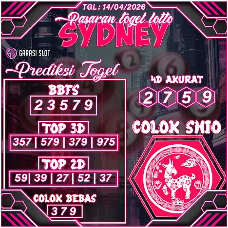 Togel SYDNEY adalah pasaran terlaris yang hampir tidak pernah tergantikan. Setiap harinya ribuan pengguna memburu dan mencari prediksi jitu seputaran togel Sydney hari ini. Nah, dibawah ini adalah prediksi togel Sydney Lotto 14 APRIL 2026 terbaik.