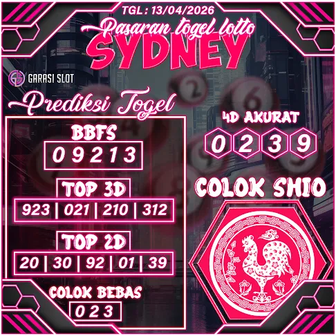 Togel SYDNEY adalah pasaran terlaris yang hampir tidak pernah tergantikan. Setiap harinya ribuan pengguna memburu dan mencari prediksi jitu seputaran togel Sydney hari ini. Nah, dibawah ini adalah prediksi togel Sydney Lotto 13 APRIL 2026 terbaik.