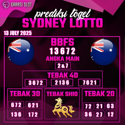 Togel SYDNEY adalah pasaran terlaris yang hampir tidak pernah tergantikan. Setiap harinya ribuan pengguna memburu dan mencari prediksi jitu seputaran togel Sydney hari ini. Nah, dibawah ini adalah prediksi togel Sydney Lotto 13 JULY 2025 terbaik.