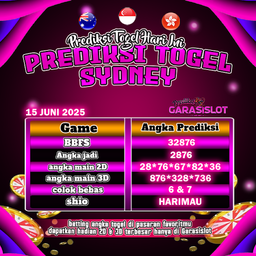 Togel SYDNEY adalah pasaran terlaris yang hampir tidak pernah tergantikan. Setiap harinya ribuan pengguna memburu dan mencari prediksi jitu seputaran togel Sydney hari ini. Nah, dibawah ini adalah prediksi togel Sydney Lotto 15 JUNI 2025 terbaik.