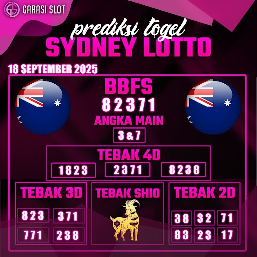 Togel SYDNEY adalah pasaran terlaris yang hampir tidak pernah tergantikan. Setiap harinya ribuan pengguna memburu dan mencari prediksi jitu seputaran togel Sydney hari ini. Nah, dibawah ini adalah prediksi togel Sydney Lotto 18 SEPTEMBER 2025 terbaik.