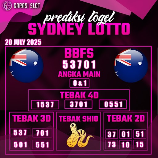 Togel SYDNEY adalah pasaran terlaris yang hampir tidak pernah tergantikan. Setiap harinya ribuan pengguna memburu dan mencari prediksi jitu seputaran togel Sydney hari ini. Nah, dibawah ini adalah prediksi togel Sydney Lotto 20 JULY 2025 terbaik.