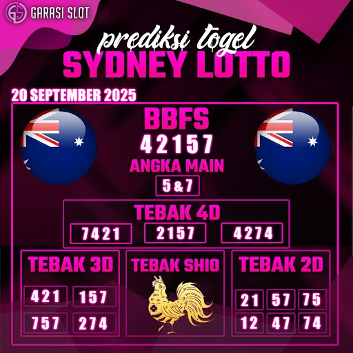 Togel SYDNEY adalah pasaran terlaris yang hampir tidak pernah tergantikan. Setiap harinya ribuan pengguna memburu dan mencari prediksi jitu seputaran togel Sydney hari ini. Nah, dibawah ini adalah prediksi togel Sydney Lotto 20 SEPTEMBER 2025 terbaik.