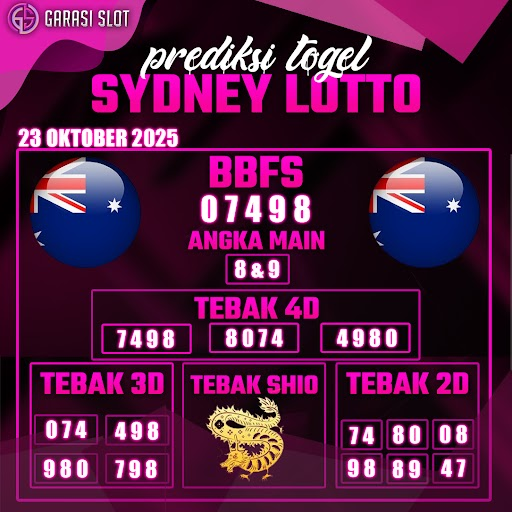 Togel SYDNEY adalah pasaran terlaris yang hampir tidak pernah tergantikan. Setiap harinya ribuan pengguna memburu dan mencari prediksi jitu seputaran togel Sydney hari ini. Nah, dibawah ini adalah prediksi togel Sydney Lotto 23 OCTOBER 2025 terbaik.